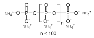 Crystal phase I APP (APP I) is characterized by a variable linear chain length, showing a lower decomposition temperature (aprox 150°C ) and a higher water solubility than Crystal Phase II Ammonium Polyphosphate. The general structure of APP is given below.