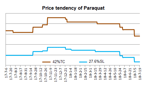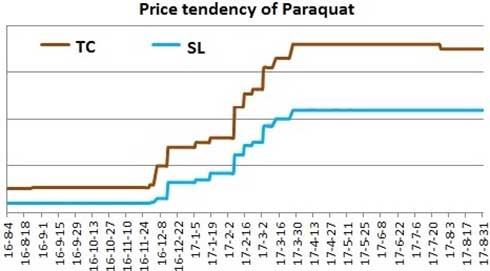 4) Along with the product Paraquat 27.6% delisted from our domestic market since July 1st, Glyphosate is currently the best substitute (as Glufosinate's price still quite high) to move in to fill up the market gap of Paraquat SL. Finally, since Glyphosate price remains in low level for quite long time, price increasing trend is market-driven by Paraquat SL delisted to some degree.